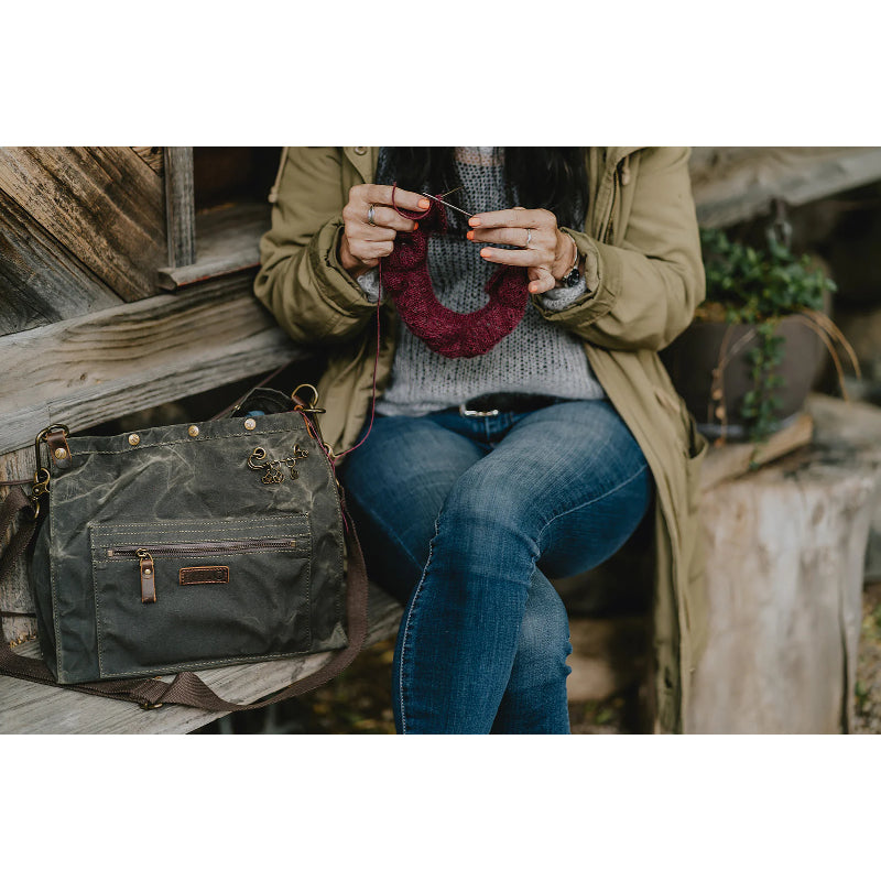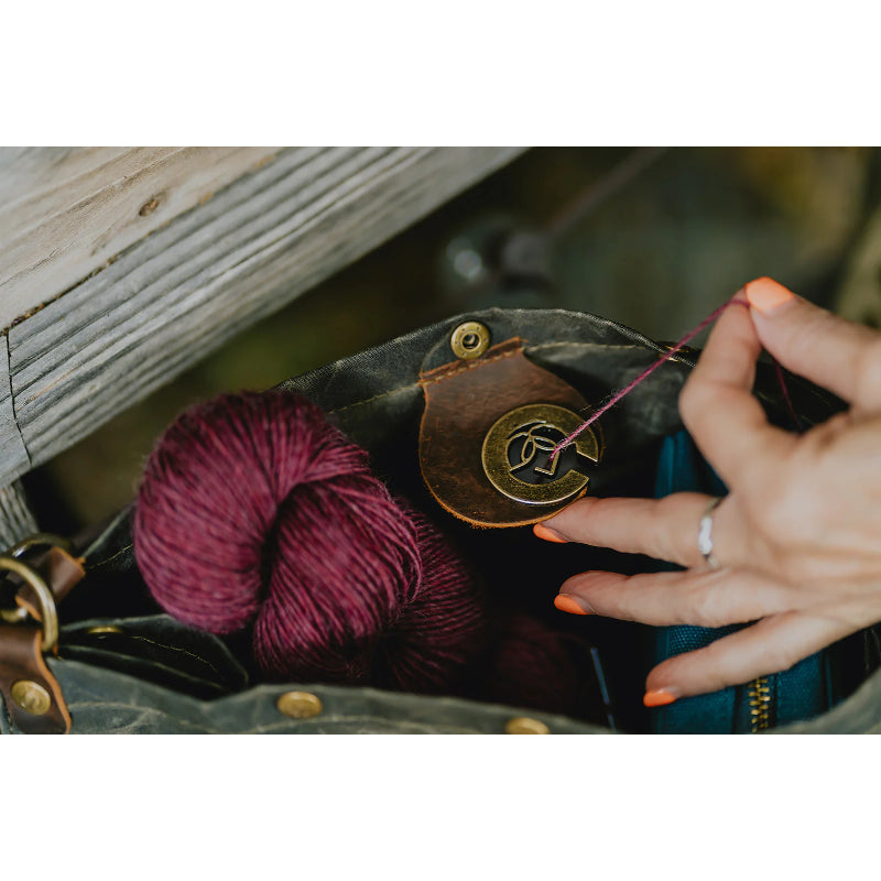 Elevated, sophisticated, and convertible, the new Rucksack from della Q is three bags in one - part Knit Sack, Oh Snap, and Tote. This mid size, hybrid project bag can be worn as a crossbody, shoulder bag, or like a clutch, while also keeping it’s maker specific features like a yarn feeder, a yarn cutter, and decorative pin with emergency stitch markers. For those looking for a small to medium size bag, perfect for your projects or as a stand alone handbag, the Rucksack is an adorable and affordable option.