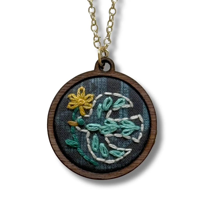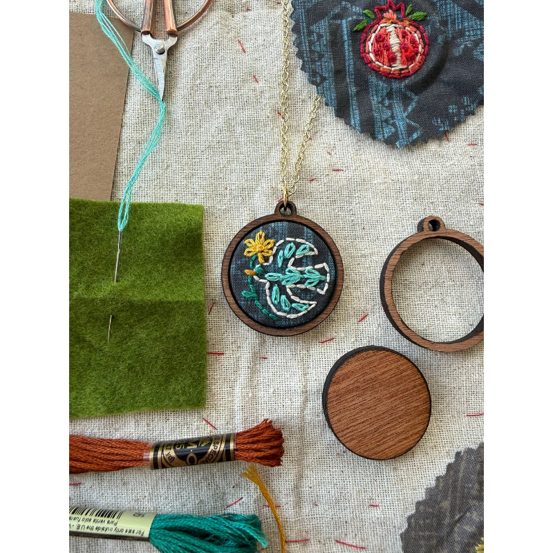 The Bird Necklace Kit from Rikrack Embroidery comes with everything you need to make this beautiful and unique Necklace. This is the perfect project for beginners and beyond.