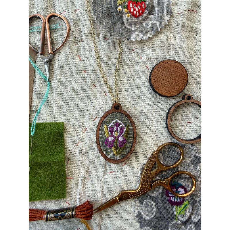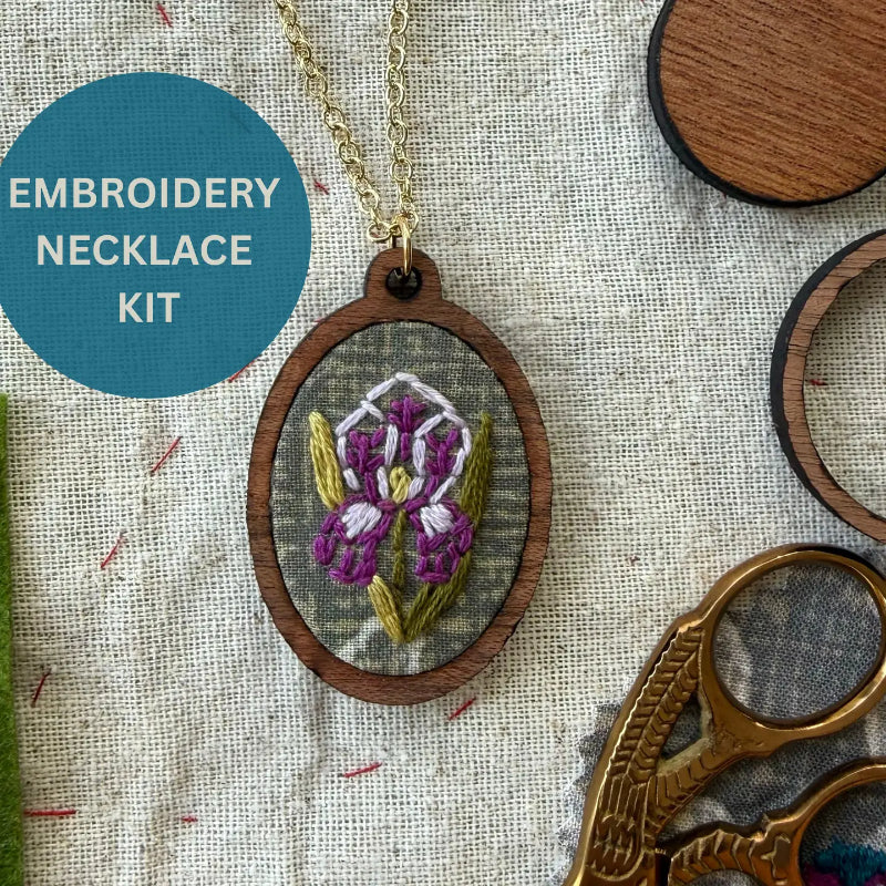 The Iris Necklace Kit from Rikrack Embroidery comes with everything you need to make this beautiful and unique Necklace. This is the perfect project for beginners and beyond.