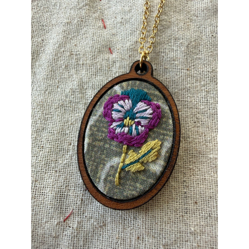 The Pansy Necklace Kit from Rikrack Embroidery comes with everything you need to make this beautiful and unique Necklace. This is the perfect project for beginners and beyond.
