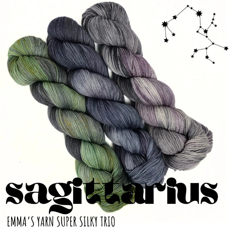 This year, Emma's Yarn is following the sun’s path through the cosmos throughout the next astrological year, releasing a Super Silky Trio for each of the twelve signs of the zodiac as they come up!
