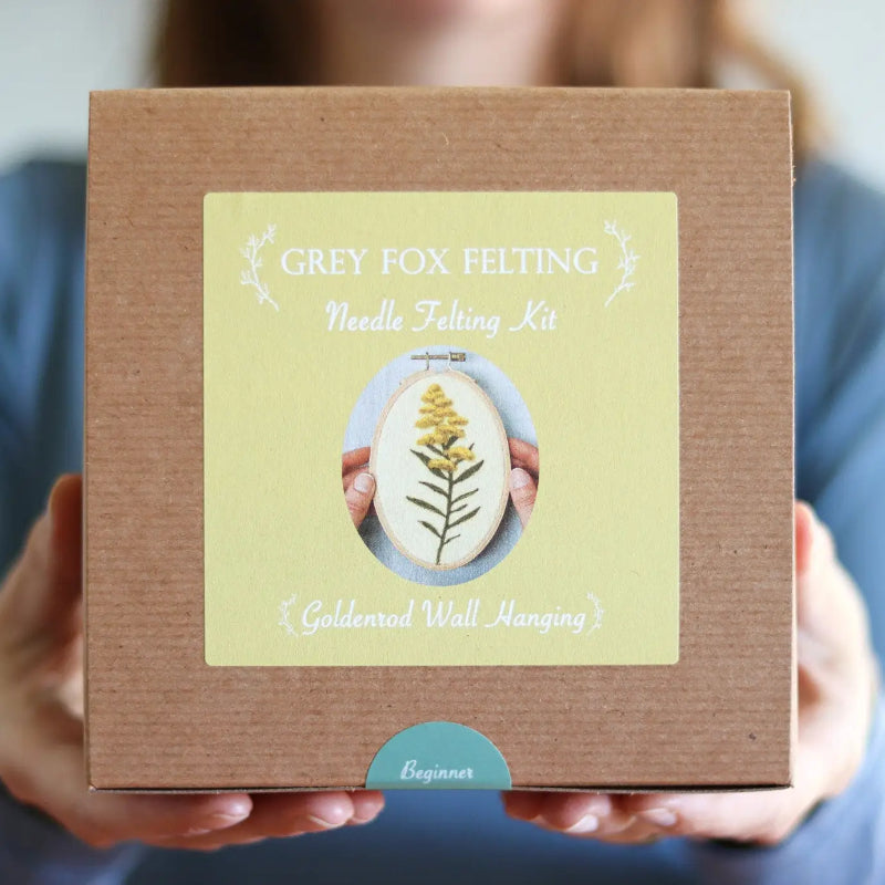 Create your own needle felted goldenrod wall hanging! This beginner friendly kit will introduce you to the art of two-dimensional needle felting, also referred to as wool painting. You’ll be guided, step by step, as you poke colorful bits of wool into a sheet of felt to create a lovely work of art that even comes with its own frame! This felting kit comes thoughtfully packaged in a labeled kraft box, ready for gift giving!